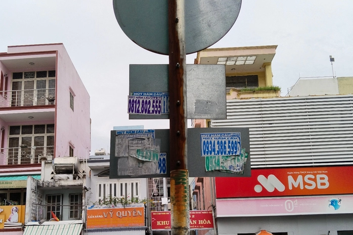 Bảng tên đường ở phường Chợ Lớn (TP HCM) chi chít quảng cáo hút hầm cầu