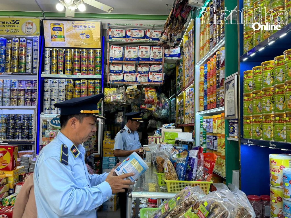 | Lực lượng chức năng ở tỉnh Khánh Hòa kiểm tra một cửa hàng bán sữa. |