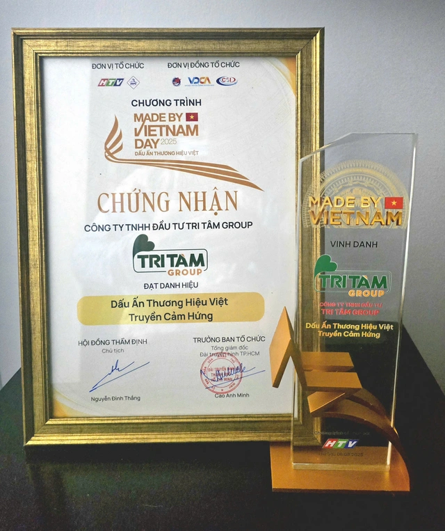 Tại Lễ Vinh danh Dấu ấn Thương hiệu Việt lần thứ nhất năm 2025, trong khuôn khổ sự kiện Made by Vietnam Day 2025 do Đài truyền hình TP HCM vừa phối hợp với các đơn vị tổ chức, Tri Tâm Group được vinh danh ở hạng mục Dấu ấn Thương hiệu Việt – Truyền cảm hứng.